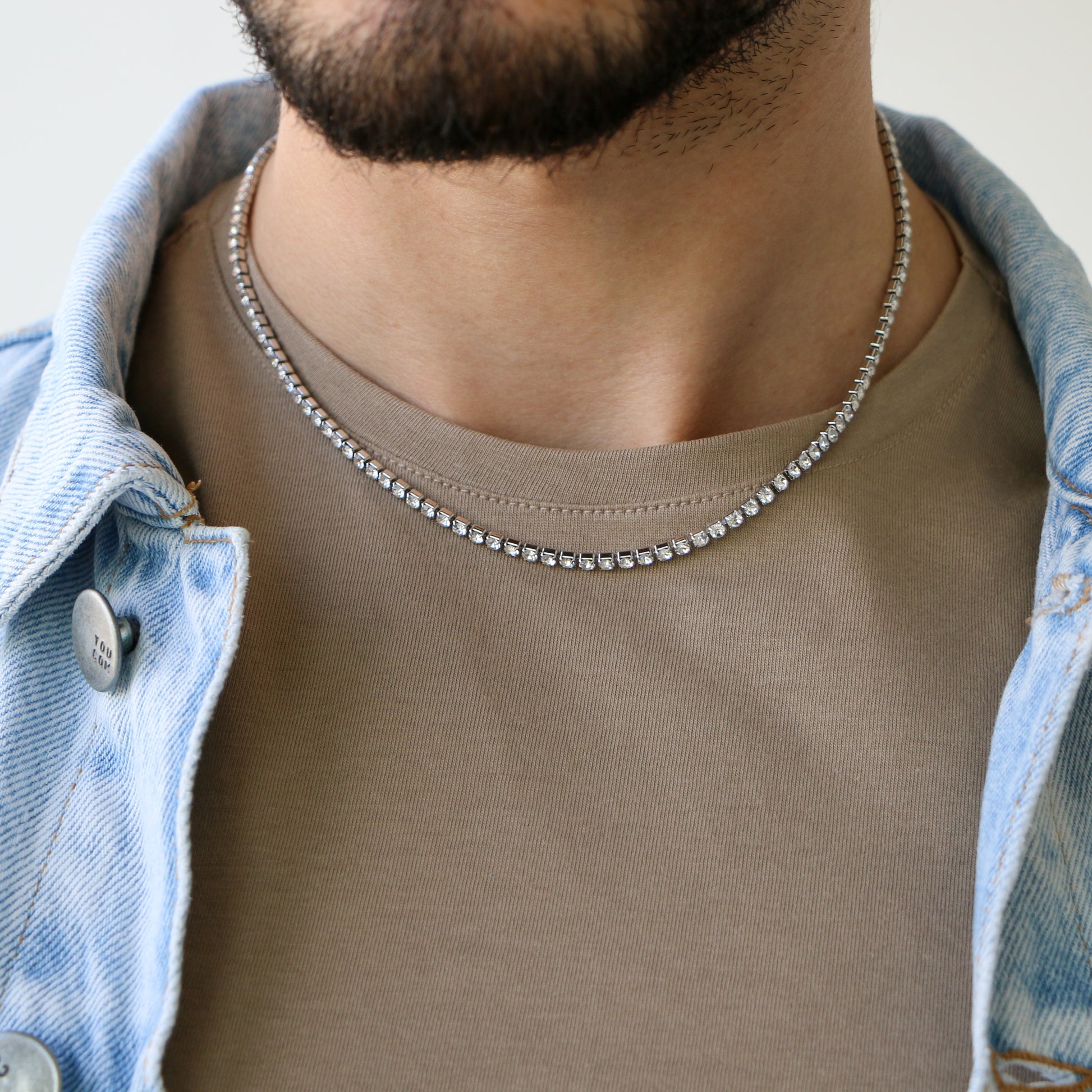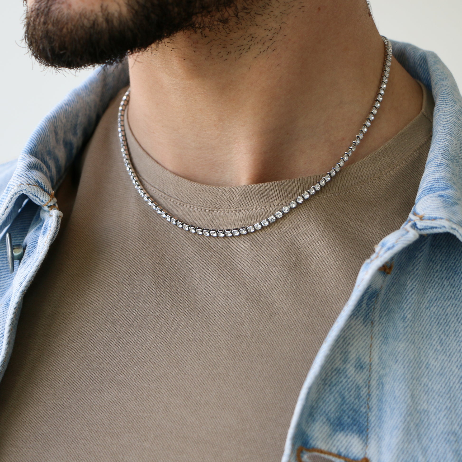 La icónica Tennis Chain. Nuestro diseño en acero inoxidable y zirconias cúbicas ofrece un brillo deslumbrante.