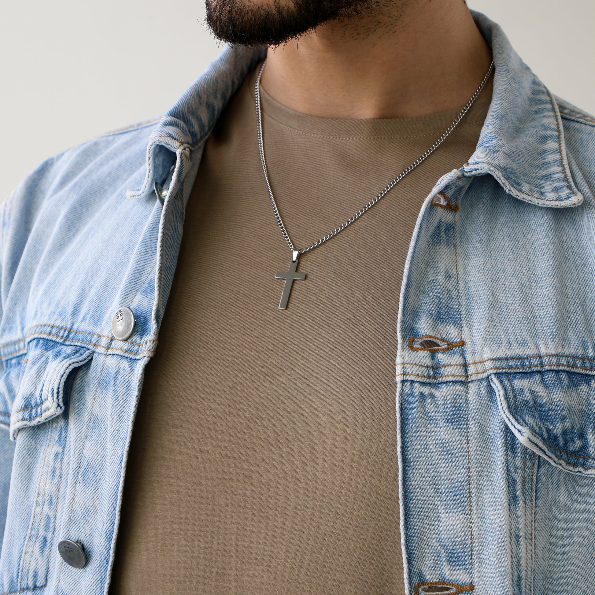 Cadena Clásica con Cruz (Mediana) SILVER