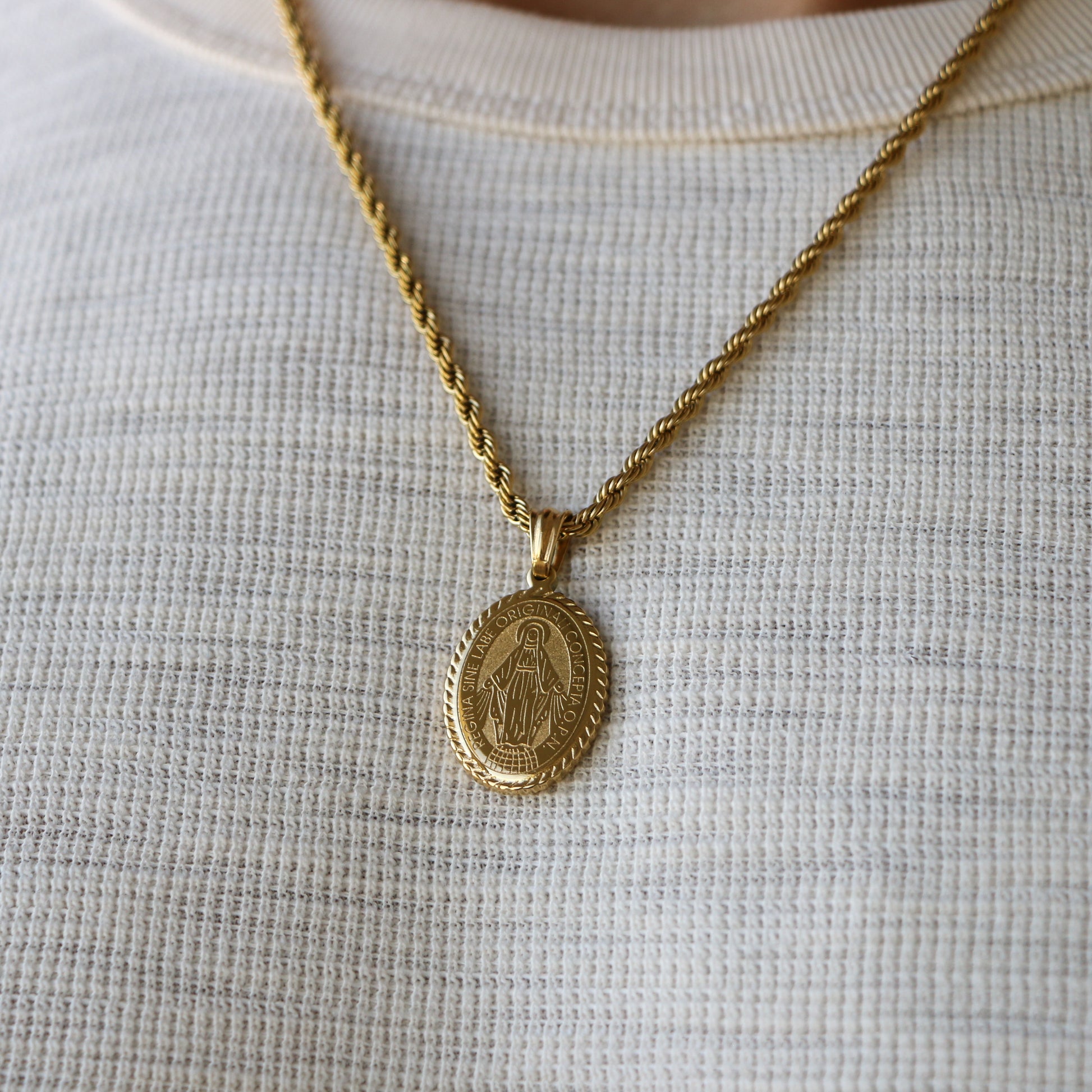 Cadena Rope con medalla de la Virgen De La Concepción, bañados en oro 18K.